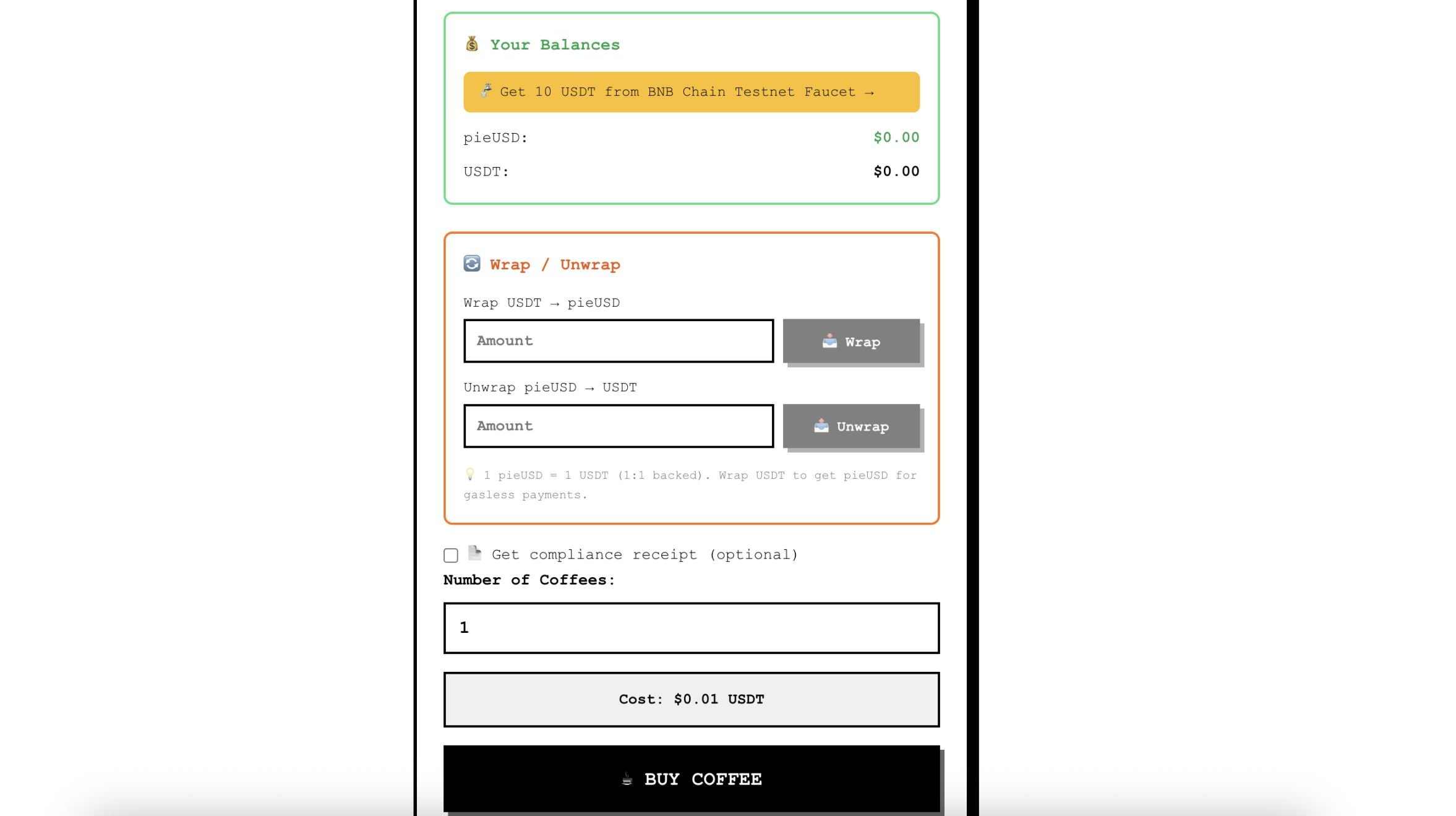 - Facilitator 到区块链:使用用户签名的授权在 pieUSD 合约上调用 transferWithAuthorization(无需支付 Gas 费)。